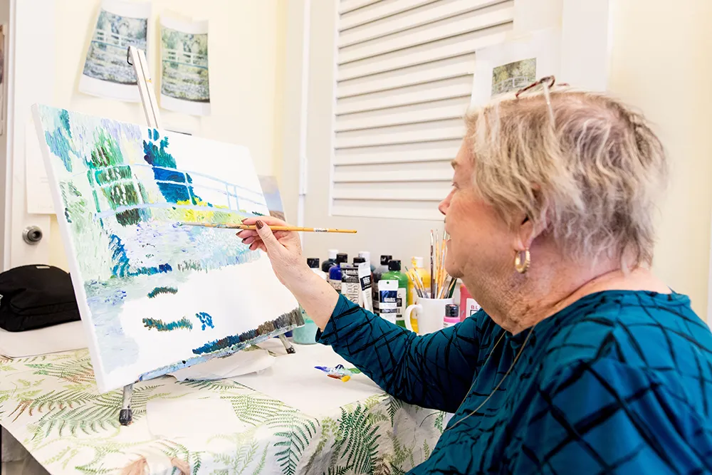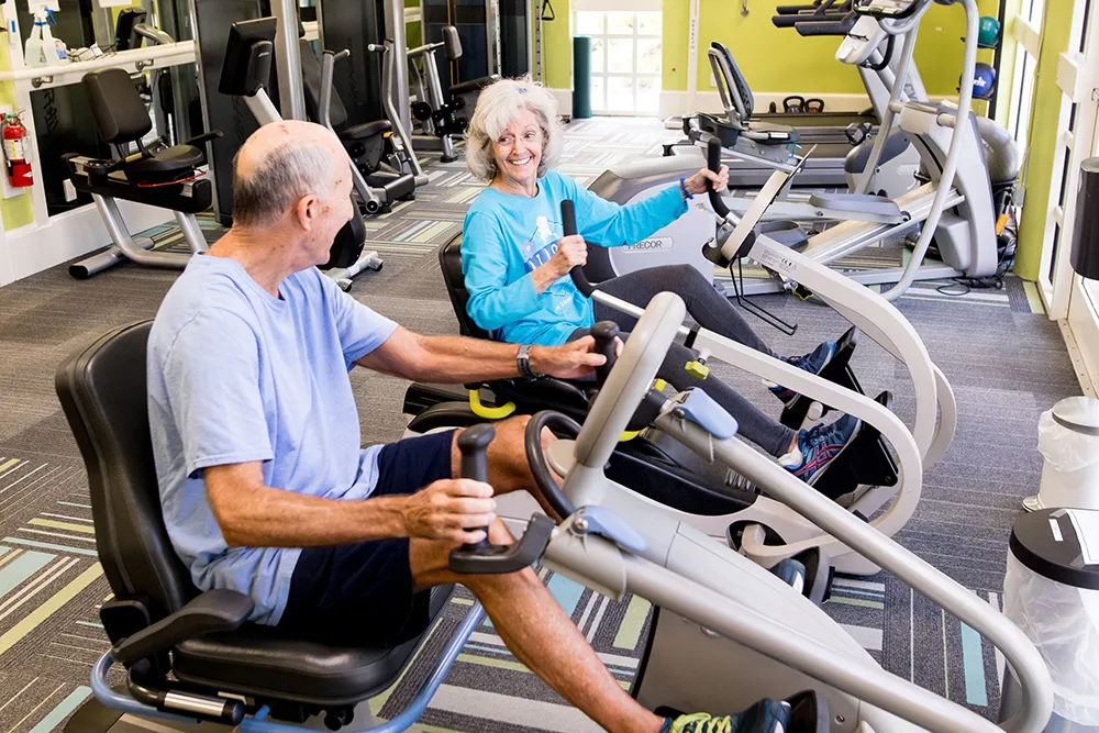 Get moving and keep fit and flexible. Swim in our outdoor pool or take an aquatic fitness class. Join an exercise class in our fully equipped fitness center. Develop a fitness plan with the help of our personal trainer. Try tai chi, stretch for yoga, walk with friends, or bike the local trails. Enjoy a round of golf or a game of pickleball nearby.